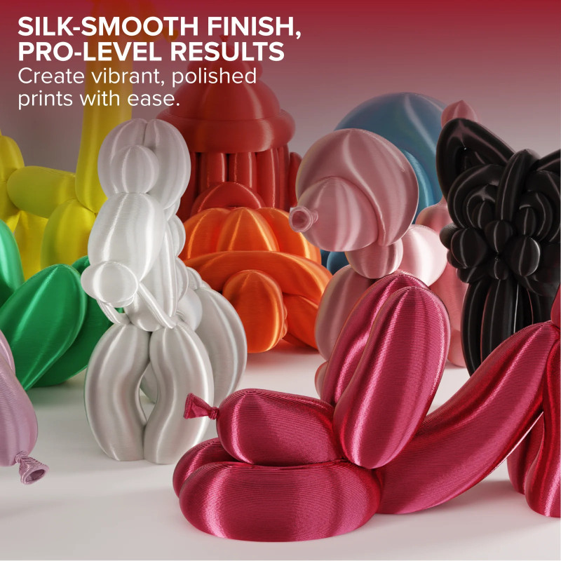 Panchroma Silk PLA с новой, усовершенствованной формулой решает классические проблемы "шелковых" пластиков, такие как хрупкость и засорение сопла, сохраняя при этом роскошную глянцевую и гладкую поверхность. Этот материал печатает быстрее и чище, обеспечивая надежные результаты на скорости до 250 мм/с, что делает его идеальным выбором для 3D-печати на любом уровне опыта.
