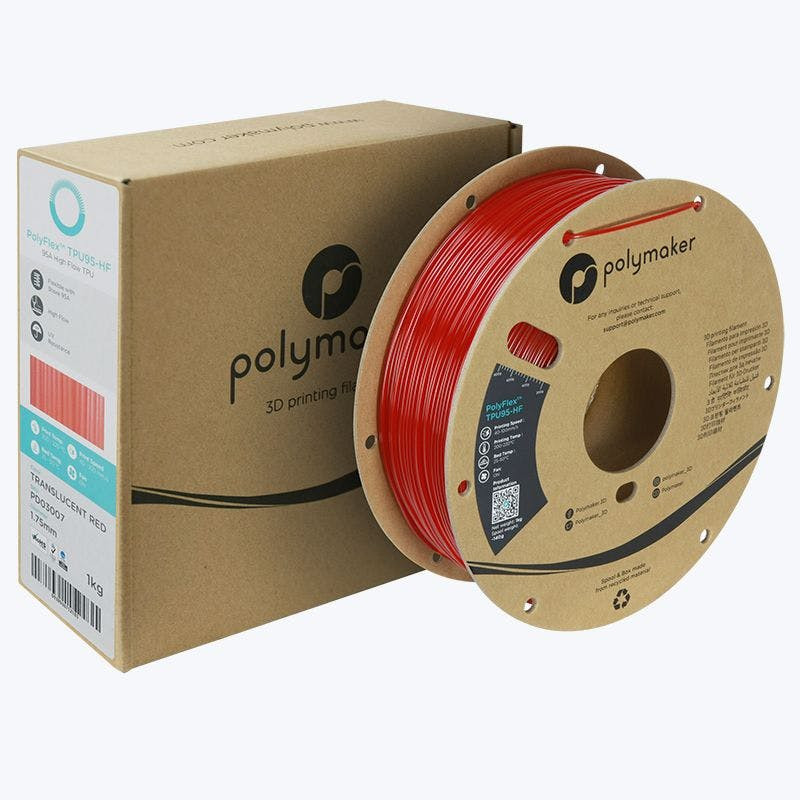 Polymaker PolyFlex TPU95-HF — высокопроизводительный гибкий филамент на основе TPU (твёрдость 95A) из семейства Covestro Addigy, с улучшенными свойствами текучести (High Flow). Это позволяет печатать на высоких скоростях, сохраняя отличное качество. Материал обладает УФ-стойкостью, высокой эластичностью и долговечностью, открывая новые возможности для гибких деталей в производстве. Идеален для чехлов, уплотнителей, амортизирующих элементов, прототипов и изделий, требующих гибкости и устойчивости к внешним воздействиям.